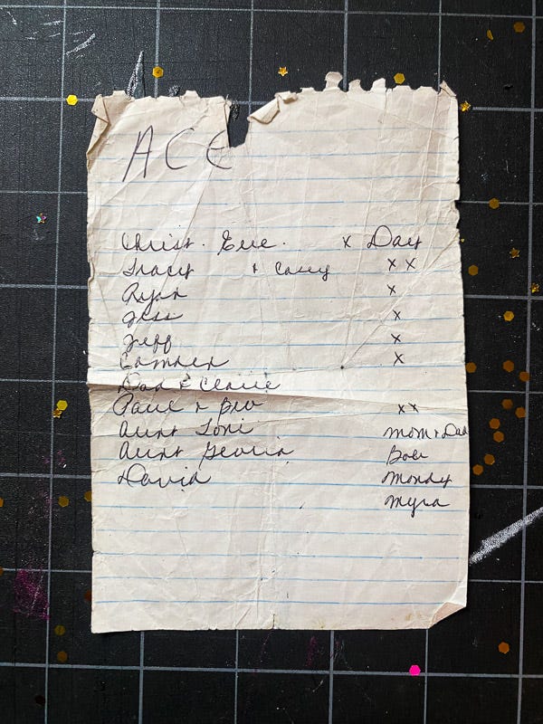This was her invite list for Christmas many many MANY years ago. It made me happy to see Tracy & Casey first. She always knew we’d be at her table for the holidays. :)
